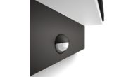 Krásne nástenné svietidlo v tvare písmena L Philips Bustan v prevedení z kvalitného antracitovo sivého hliníka vyžaruje na stenu rozptýlené jasné LED svetlo. Vďaka dodávanému snímaču pohybu sa zapne automaticky, keď niekto prechádza v jeho blízkosti.