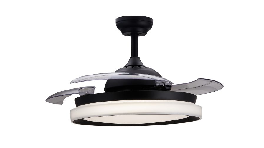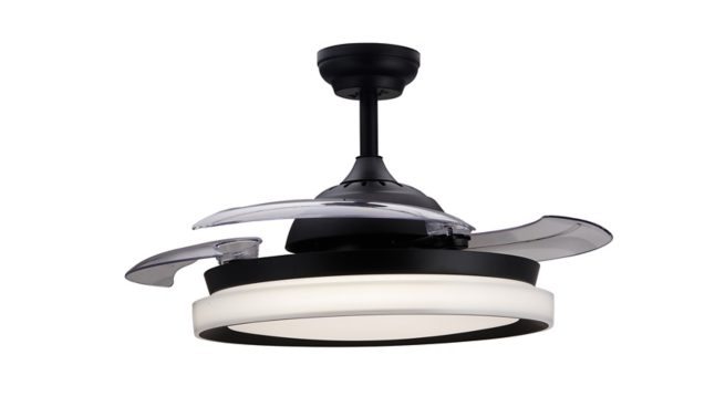 Rozlúčte sa s pohyblivými tieňmi na strope: tento ventilátor má priehľadné čepele, ktoré možno ukryť do svietidla, keď sa nepoužívajú.